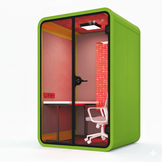Red Aura Bio-Focus Pods: Soundproof Office Pods with Integrated Red Light Therapy (1-6 Person Wellness Workspaces)